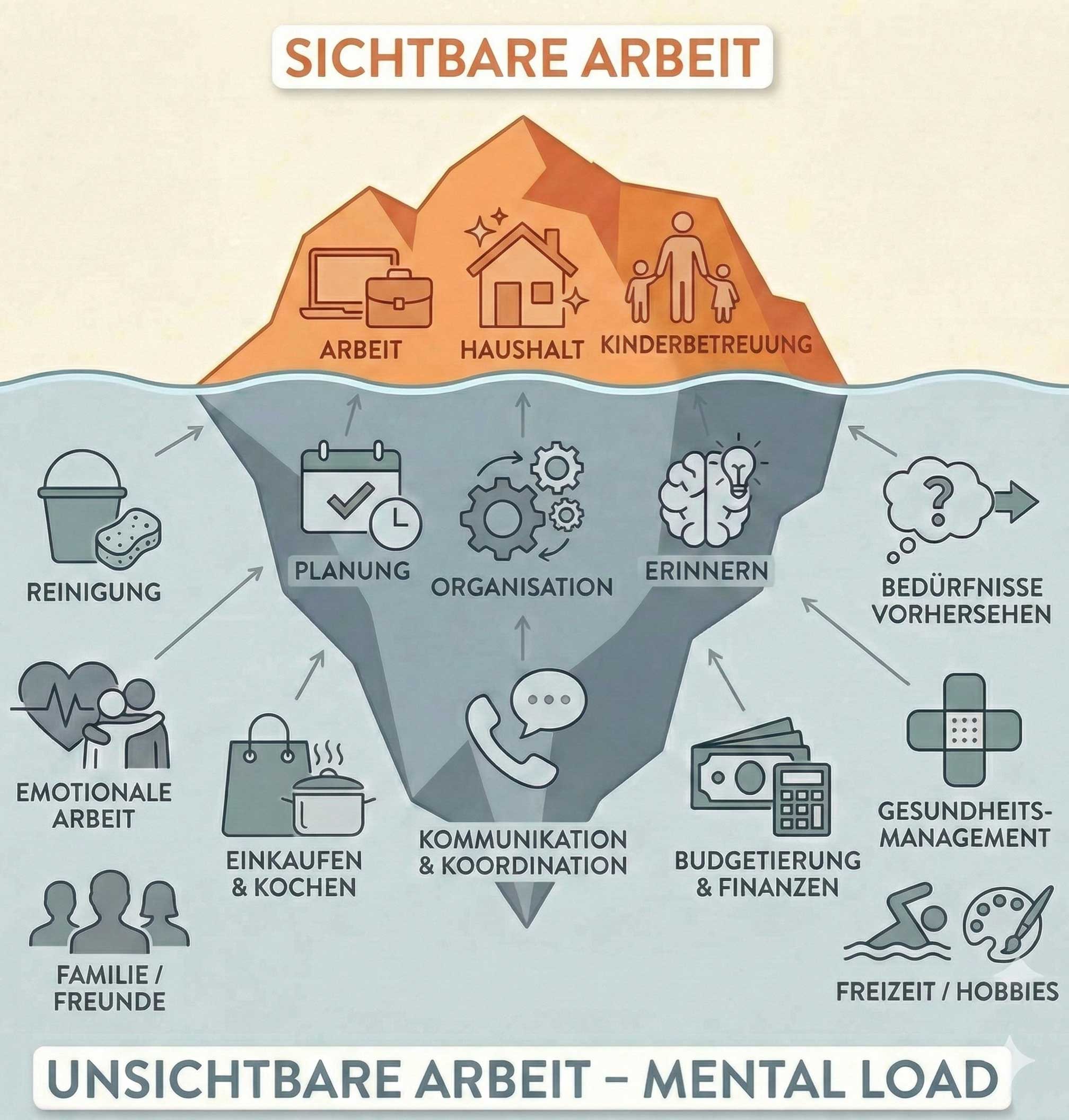 Denn Mental Load ist keine Einbildung! Es ist die unsichtbare Last der ständigen mentalen Organisation – von der Einkaufsliste bis zur Terminkoordination, von der Sorge um Details bis zur emotionalen Arbeit im Hintergrund.